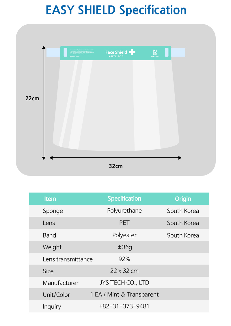 JYS TECH made the safer Easy shield that has been applied with anti-bacterial and anti-fog coating.